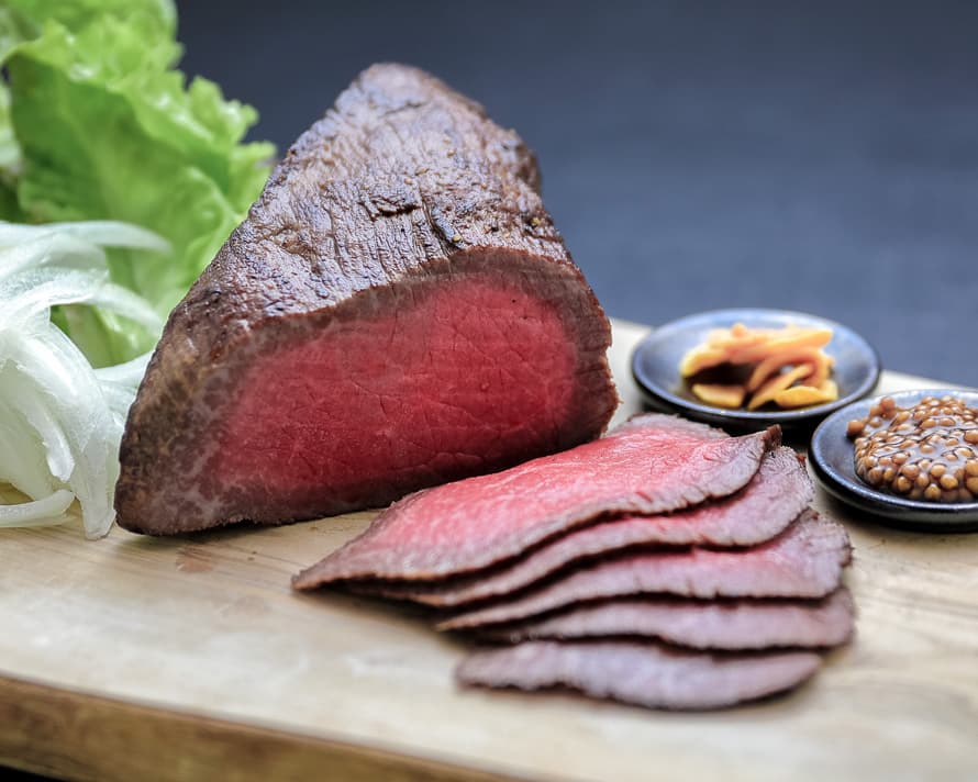 ローストビーフの断面に広がる美しい赤のグラデーションは手間暇を惜しまない手作り技術で完成します。