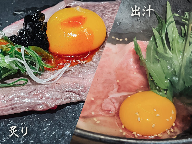 熱々の一番出汁をお肉にかけて。「炙りユッケがあるなら出汁ユッケがあってもいいのでは?」そんな発想から生まれた商品です。カツオと昆布の出汁、海の幸と山の幸のお肉の絶妙なコラボレートです。