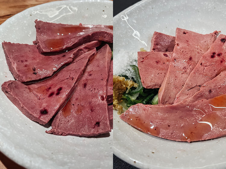 これまでもあったメニューですが、メニュー名そのままに調理法を見直し、新しい「低温調理レバー」になりました。クセになりそうなフワッとした食感を保つために、これまでよりも調理に時間がかかるようにはなりましたがより美味しく召し上がっていただけるかたちに仕上がったと自負しております。今までとは違うこの食感のために、ご注文をいただいてから提供まで時間をいただきます。そのため数にも限りがありますので、出来るだけ予約注文をお願いいたします [ 低温調理 ]専用器具で調理したそのまま焼かずに食べられる新感覚の焼肉。フランスが発祥と言われている調理法で低温でじっくり火を入れることにより、肉がジューシーで美味しく仕上がります。