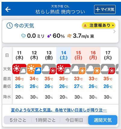 今週の天気予報では週末まで