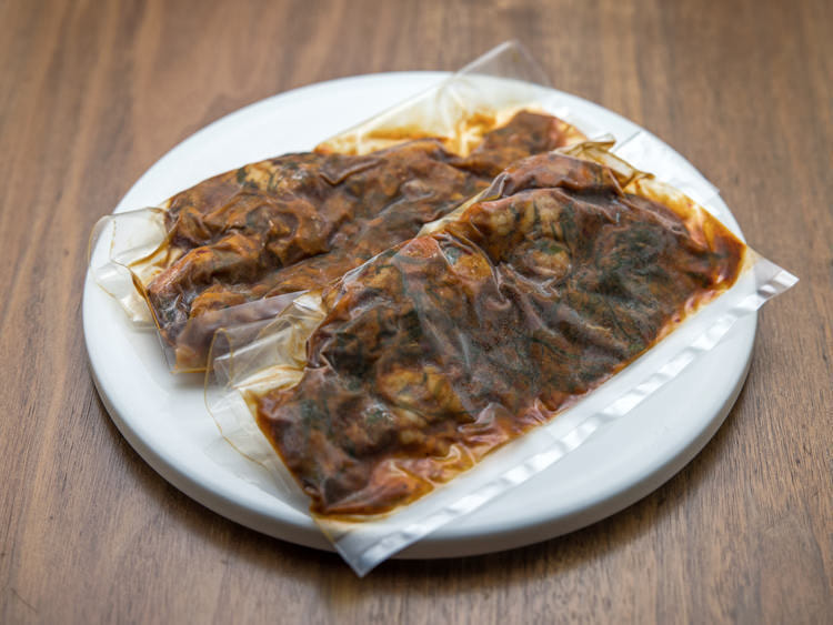 焼き上げた状態で真空パックに。旨味、風味を漏らさず包み込み、冷凍したものをお渡しいたします。こちら沸騰したお湯に10分、湯煎で戻していただければ、店舗で焼き立てがご自宅で再現!