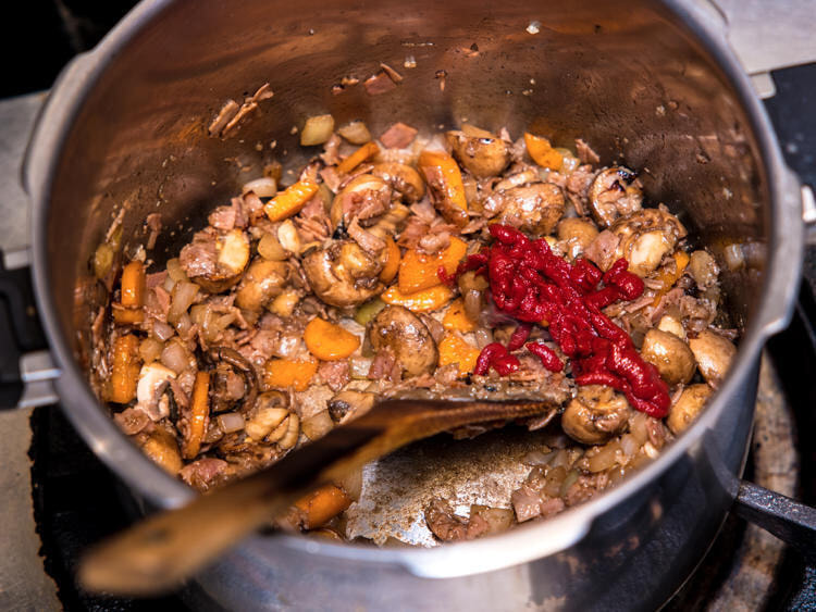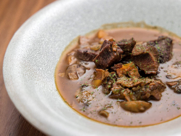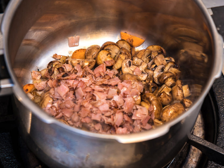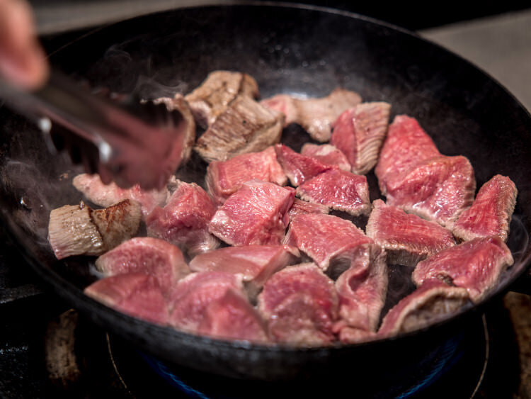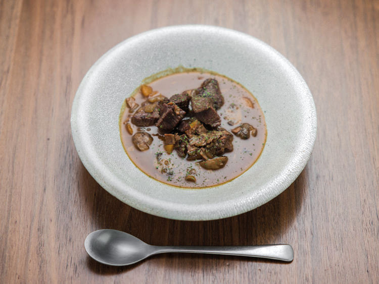 このシチューが特別なのは、手間暇かけた調理工程と、国産タンの風味がしっかり活かされているからです。ベースとなる細かく刻んだベーコンをバターで炒めるところから始まり(ここでシチューに深みが加わります)、次に、じっくりと炒めたタン、マッシュルーム、玉ねぎ、人参がその旨味を引き出し、それぞれの素材がバランスよく調和します。