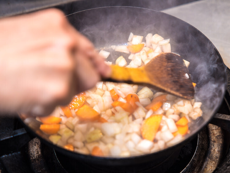 甘みが引き立つ玉ねぎ、人参を加えることで
