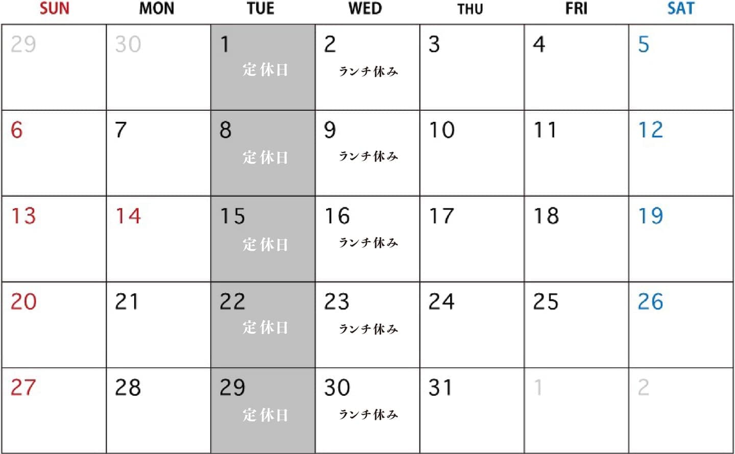 ※ランチ営業は月、木、金、土、日のみです(火、水曜休みです)