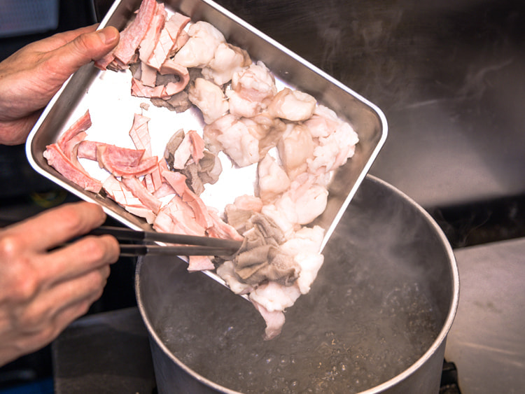 ━━ ホルモンを丁寧に出汁へ投入し、じっくりと煮込むことで、