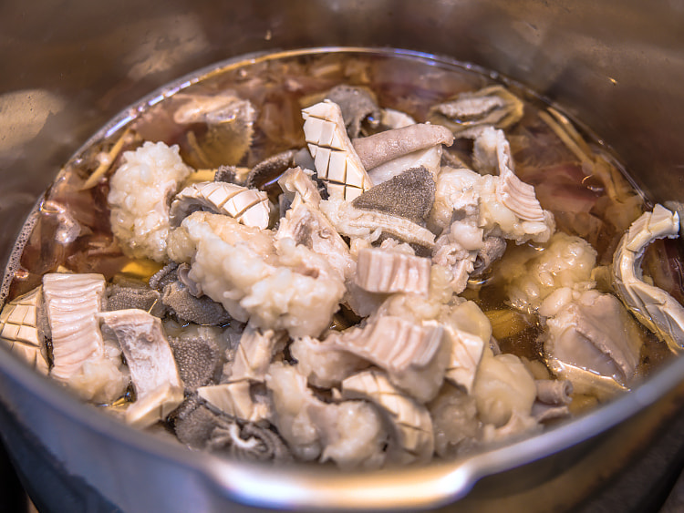 さらに、冷水でしっかり洗うことで、ホルモン本来の旨味を引き出しつつ、柔らかな食感を残しています。ここが重要なポイントです。単に煮るだけではなく、この手間をかけることで、ホルモンが持つ本来の食感と風味が最大限に活きてきます。