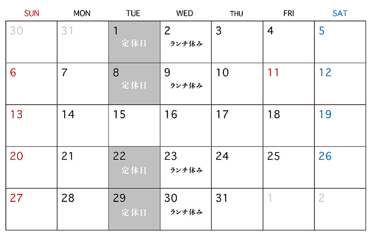 火曜日( ランチは火・水曜休み )