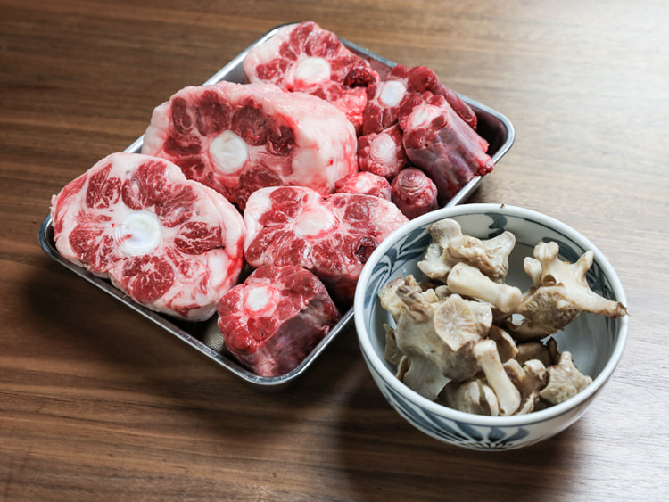 熟成されたテール肉は、丁寧に下処理します。余分な脂や筋を取り除き、肉の骨と脂をバランスよく調整します。ここでの作業が、後のスープの美味しさを左右する重要な工程となります。